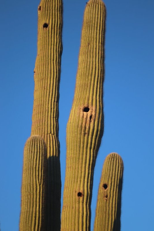 The pygmy owl has a simple need for the desert. They are cavity nesters and require the climate-insulated holes punctuating the arms of saguaros and thick-trunked mature trees in the ironwood and saguaros forests of northwest Tucson, Marana, and of the Sonoran Desert found southwest of Tucson and south to Mexico. Pygmy owls have high site fidelity, meaning they are very loyal to their nest sites. When they aren’t in their saguaro holes, they will perch on the lookout and then dive in at speed to catch prey. When a saguaro dies, the hardened shells of these cavity holes are left behind amongst the saguaro ribs like cast off boots.