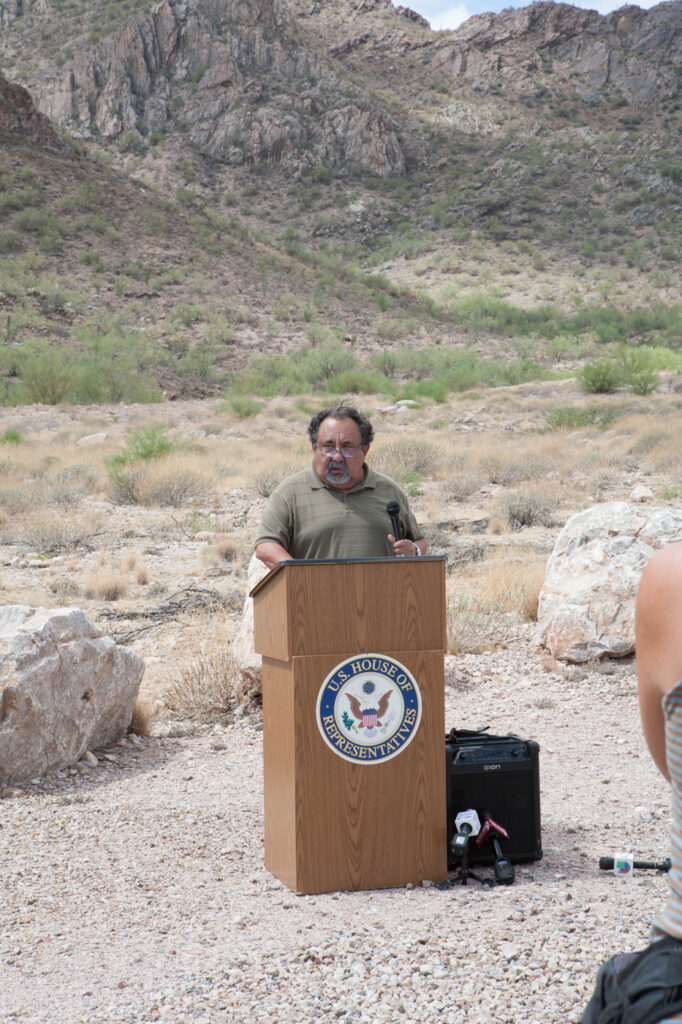 Grijalva joins Carolyn Campbell and other environmental advocates for a press conference at Ironwood Forest National Monument (2017)