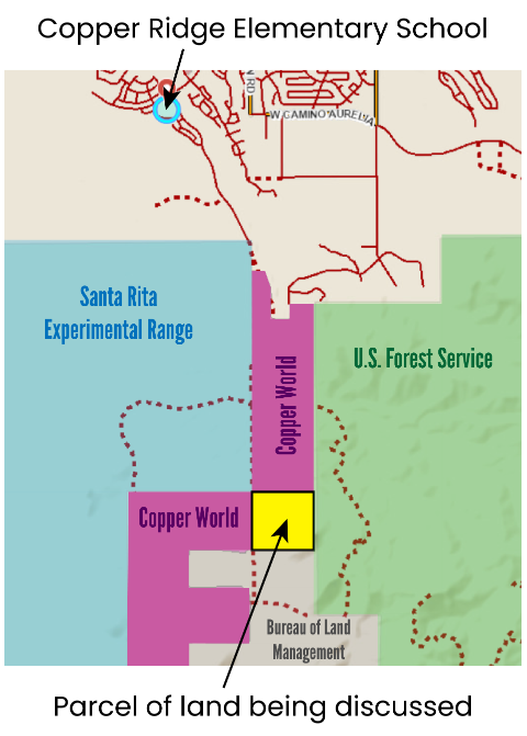 The auction of this property is expected to benefit only one party — Hudbay’s proposed Copper World mining project. This project would use 70 billion gallons of groundwater, harm natural and cultural resources, and pose pollution and health risks to nearby residents, including in Corona del Tucson. It is strongly opposed by local communities and by local jurisdictions, including Pima County.